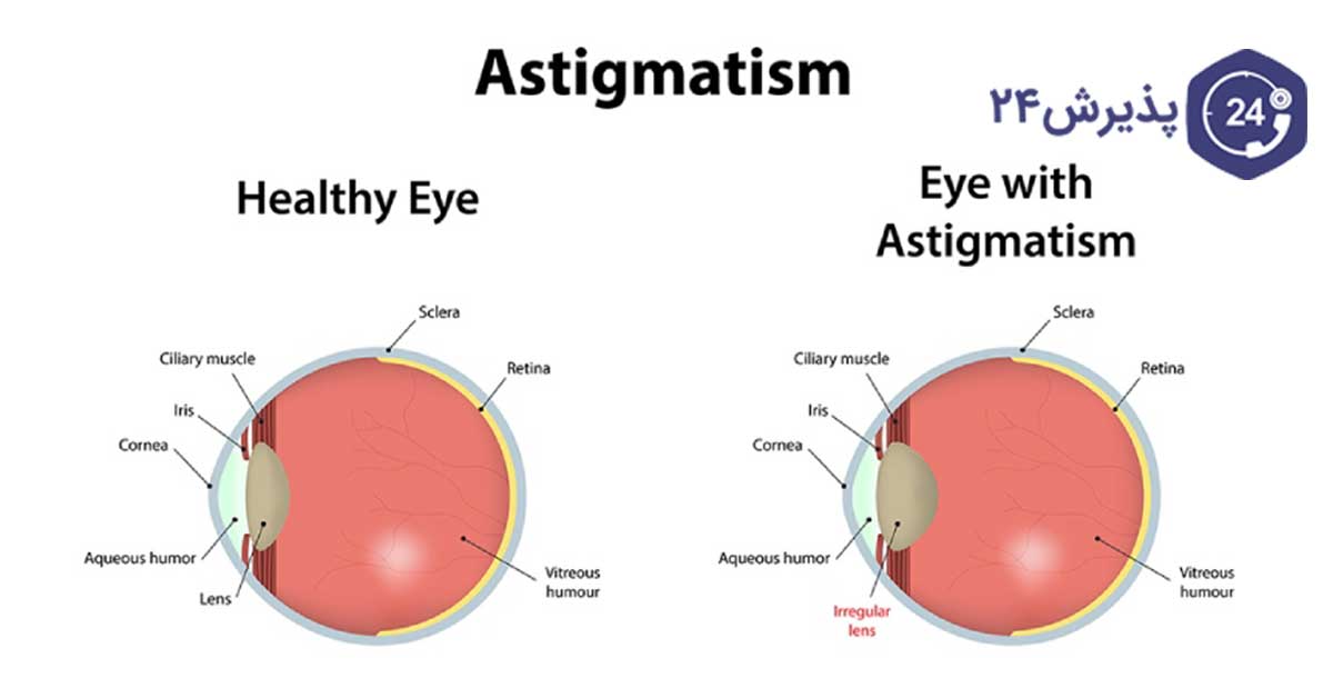 آستیگماتیسم معمولا با نزدیکبینی (myopia) یا دوربینی (hyperopia) توام است. این سه عارضه با عنوان عیوب انکساری چشم شناخته میشوند. دلیل این امر هم آن است که همه این موارد با نحوه شکست یا انکسار نور ارتباط دارند. استفاده از عینک یا لنز مناسب و جراحی میتواند به برطرف کردن این عارضه کمک کند. بنابراین، برای مقابله با این مشکل لازم است به پزشک مراجعه کرده یا از طریق پذیرش ۲۴ با بهترین متحصصان آنلاین چشم مشورت کنید.