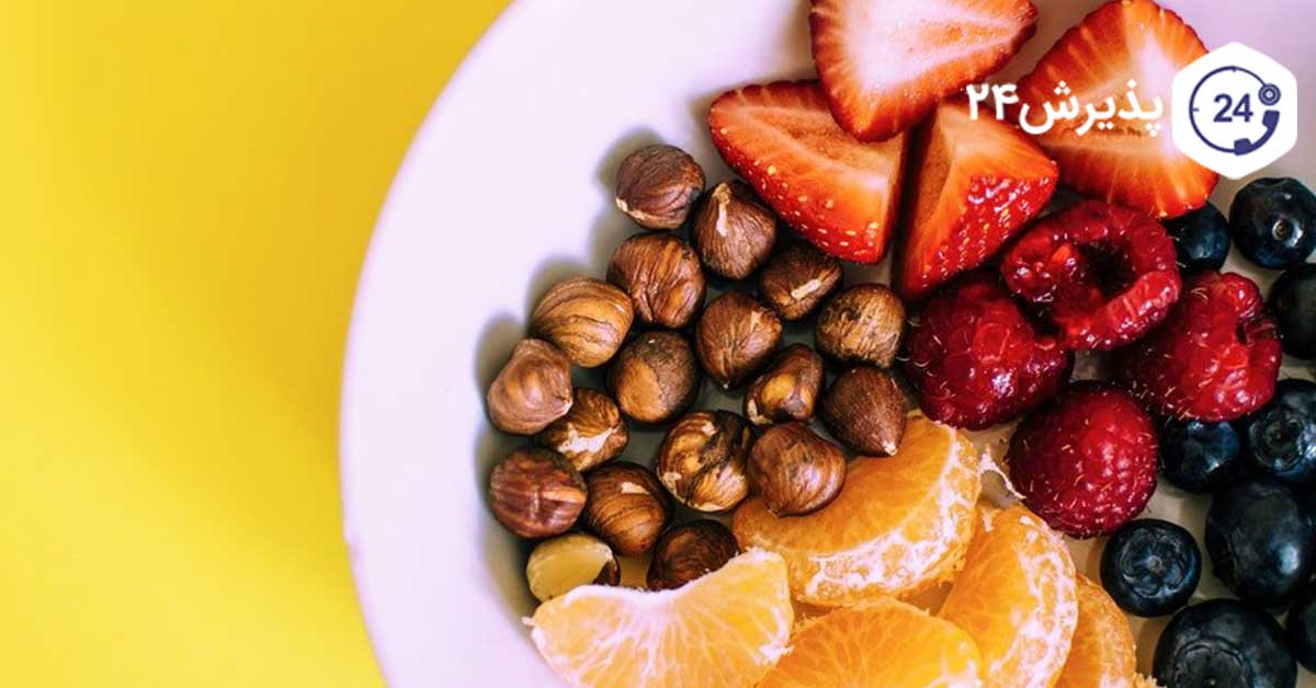 - ۲/۱ فنجان میوه بهعنوانمثال ۴ عدد توتفرنگی