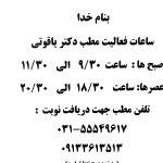 زودترین زمان رزرو نوبت از مطب علی رضا یاقوتی امروز 18:30 میباشد که میتوانید از طریق وبسایت و یا اپلیکیشن نوبتدهی پذیرش۲۴ نوبت خود را به صورت اینترنتی و غیرحضوری دریافت کنید.
