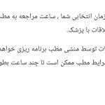 - طبق نظر بیماران قبلی، میانگین زمان انتظار ویزیت: 110 دقیقه