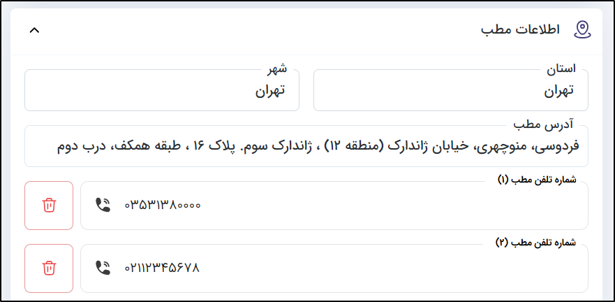 مشخص کردن شهر، آدرس و موقعیت مکانی صحیح در نقشه، در جستجوهای ویزیت حضوری حائز اهمیت است. بیمار میتواند با جستجو بر اساس آدرس، شما را راحتتر پیدا کند.