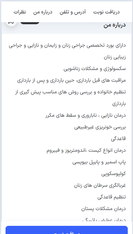 ثبت درجه علمی، تخصص و عنوان مستعار تخصص بیربط با مهارتهای درمانیتان باعث افت رتبه و در نهایت حذف از نتایج جستجو خواهد شد.