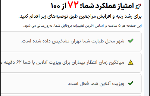 - نحوه بهبود رتبه پروفایل پزشک در پذیرش24